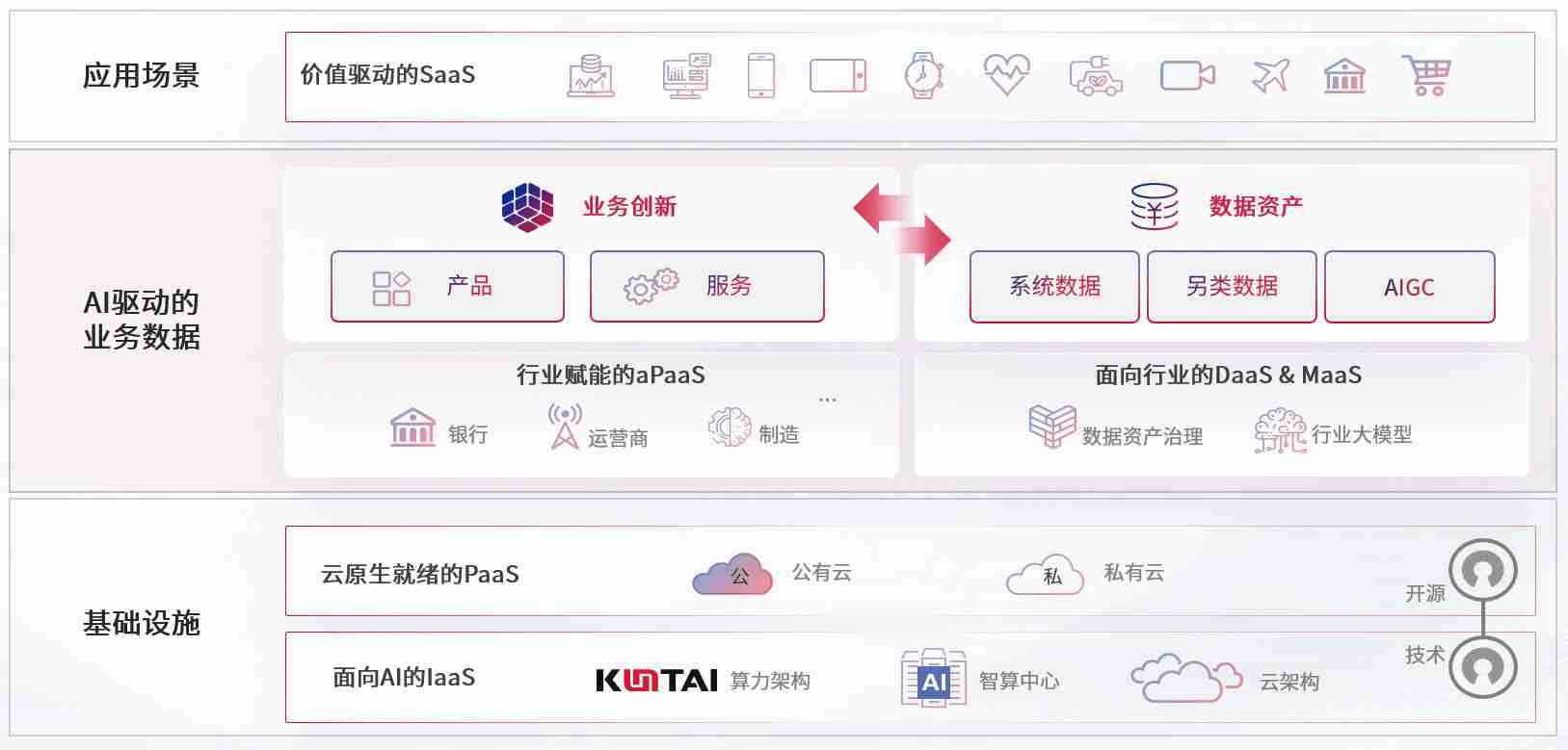 数字时代,,围绕企业数字化转型的关键要素,,NO钱包数码开创性的提出数云融合战略和技术体系框架,,,,着力在云原生、、数字原生、、、AI原生和信创产业上架构产品和服务能力,,,,为处在不同数字化转型阶段的快消零售、、、、汽车、、、金融、、医疗、、、政企、、、教育、、运营商等行业客户提供泛在的敏捷IT能力和融合的数据驱动能力,,构建跨界融合创新的数字业务场景和新业务模式,,,助力企业级客户建立面向未来的核心能力和竞争优势,,,,全面推动社会的数字化、、、智能化转型升级。。。。